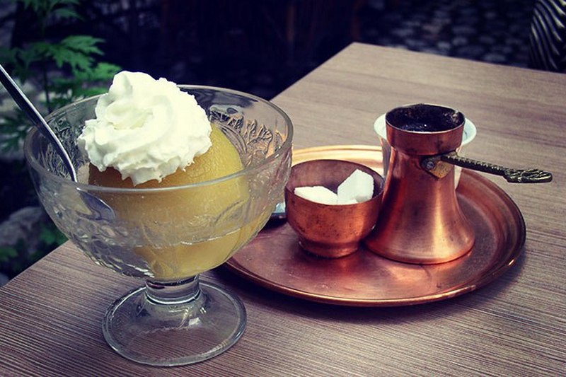 Tufahija - Tufahija is an old dessert recipe popular in Serbia and surrounding countries. It’s an apple with walnut and sugar filling. First, the apple is cooked in sugar water, then filled with milled nuts, whipped egg whites cream, and vanilla sugar. After filling, apples are baked and finally sipping with syrup.